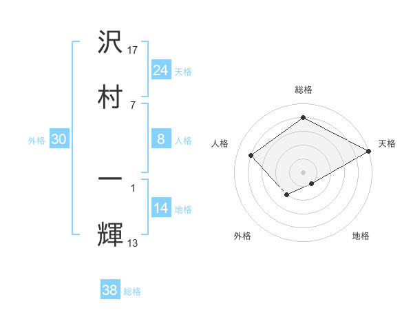 沢村 一輝さんを姓名の画数から五運を鑑定