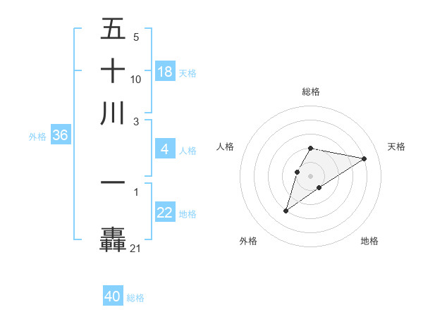 五十川 一轟さんを姓名の画数から五運を鑑定