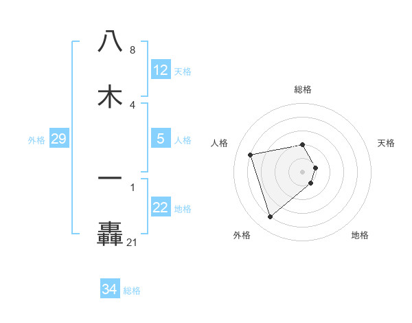 八木 一轟さんの外格は29画の4点!