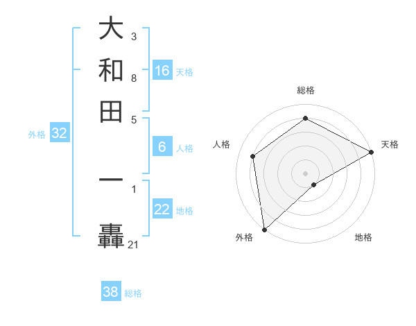 大和田 一轟さんを姓名の画数から五運を鑑定