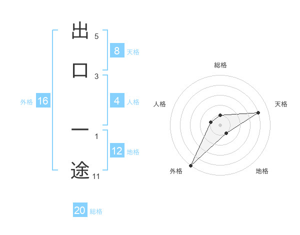 出口 一途さんの総格は20画の1点!