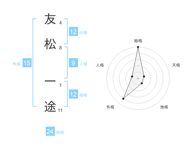 友松 一途さんの天格は12画の1点!