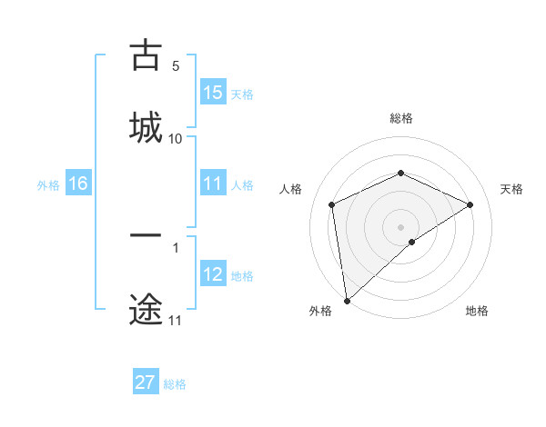 古城 一途さんの総格は27画の3点!