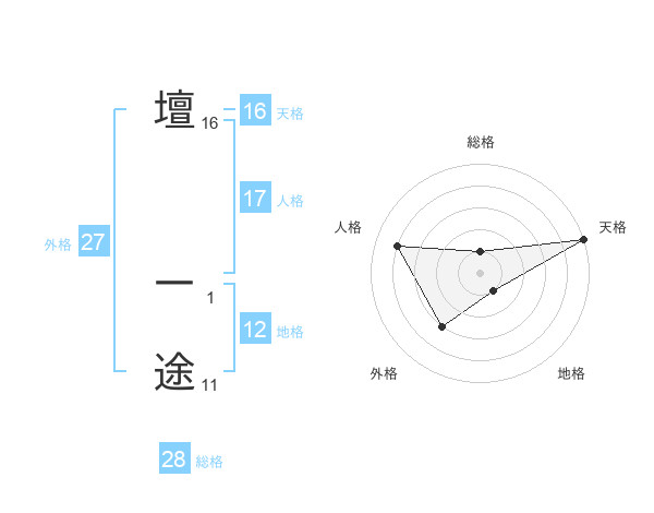 壇 一途さんの天格は16画の5点!
