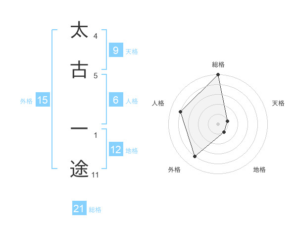 太古 一途さんの総格は21画の5点!