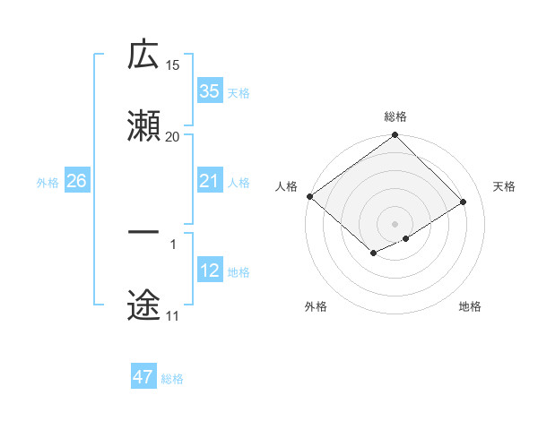 広瀬 一途さんの総格は47画の5点!
