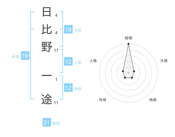 日比野 一途さんの総格は31画の5点!