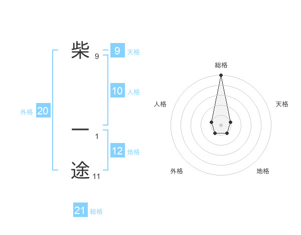 柴 一途さんの総格は21画の5点!