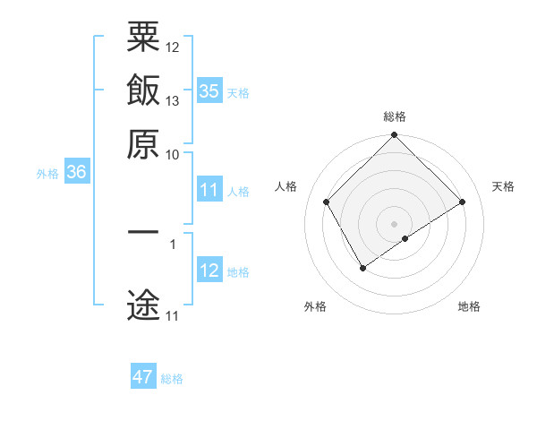 粟飯原 一途さんを姓名の画数から五運を鑑定