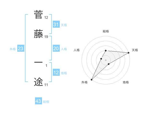 菅藤 一途さんを姓名の画数から五運を鑑定