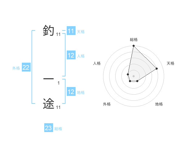 釣 一途さんの総格は23画の5点!