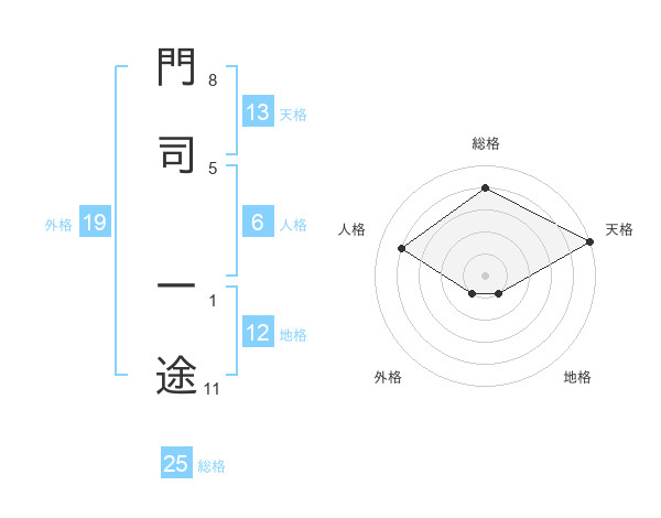 門司 一途さんを姓名の画数から五運を鑑定