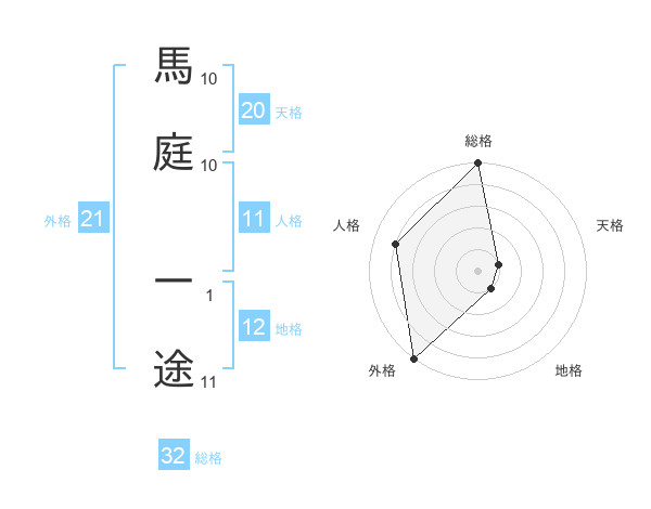 馬庭 一途さんを姓名の画数から五運を鑑定