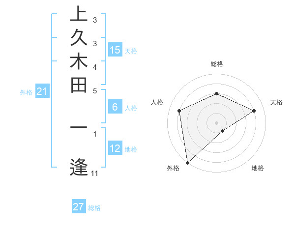 上久木田 一逢さんを姓名の画数から五運を鑑定