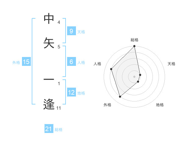 中矢 一逢さんを姓名の画数から五運を鑑定