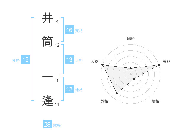 井筒 一逢さんを姓名の画数から五運を鑑定