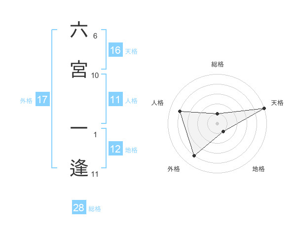 六宮 一逢さんを姓名の画数から五運を鑑定