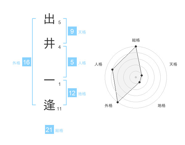 出井 一逢さんの総格は21画の5点!