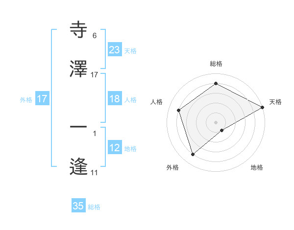 寺澤 一逢さんの天格は23画の5点!