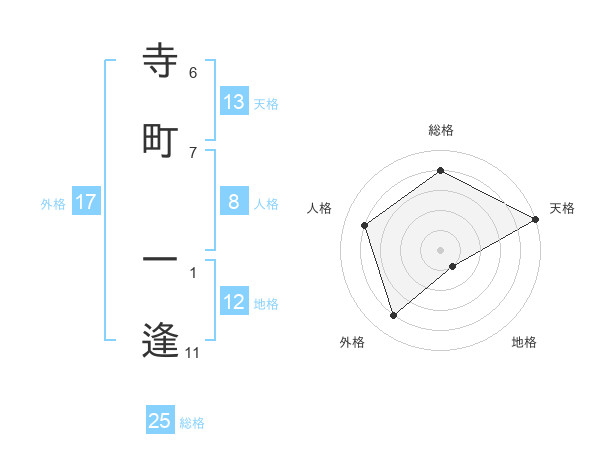 寺町 一逢さんの天格は13画の5点!
