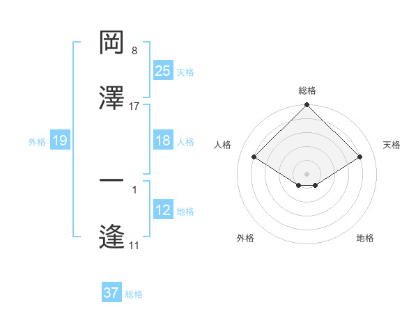 岡澤 一逢さんを姓名の画数から五運を鑑定