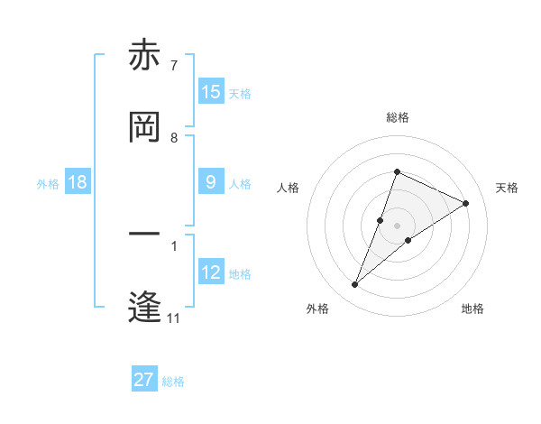 赤岡 一逢さんを姓名の画数から五運を鑑定