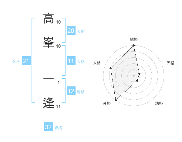 高峯 一逢さんを姓名の画数から五運を鑑定