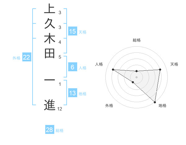 上久木田 一進さんの外格は22画の1点!