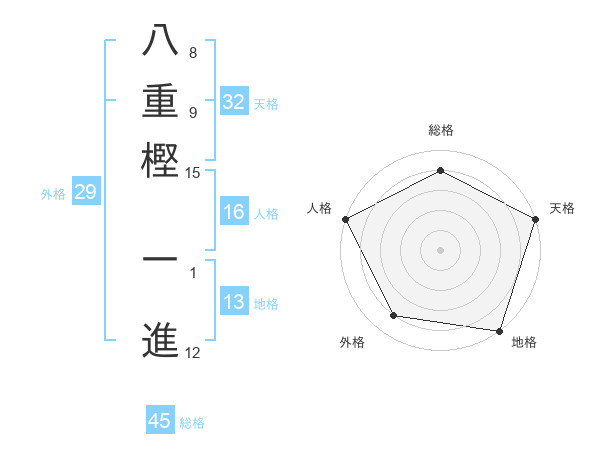 八重樫 一進さんを姓名の画数から五運を鑑定