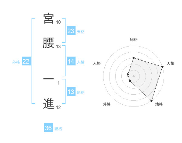 宮腰 一進さんを姓名の画数から五運を鑑定