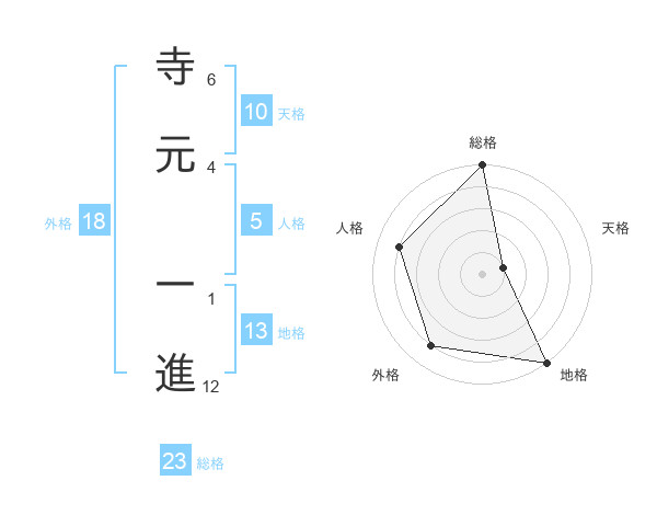 寺元 一進さんの総格は23画の5点!