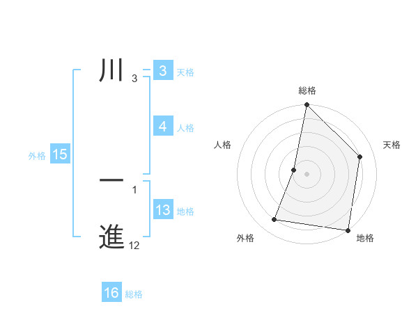 川 一進さんの総格は16画の5点!