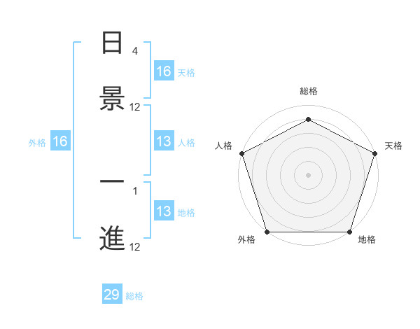 日景 一進さんの総格は29画の4点!