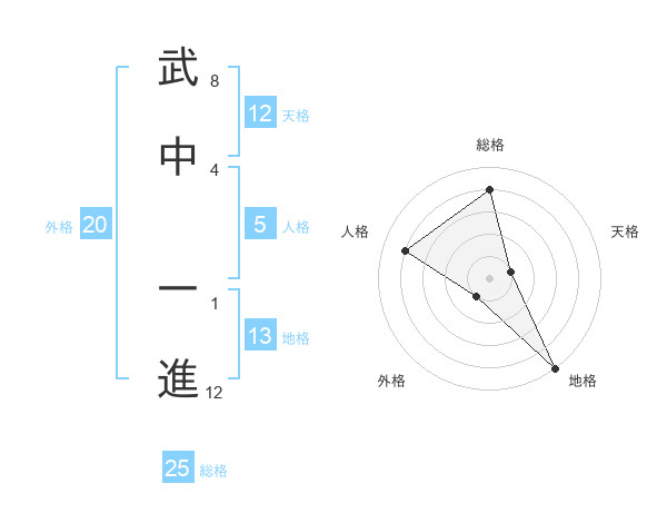 武中 一進さんの地格は13画の5点!