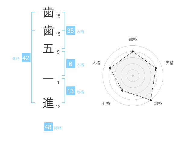 歯歯五 一進さんを姓名の画数から五運を鑑定