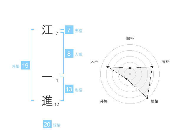 江 一進さんの総格は20画の1点!