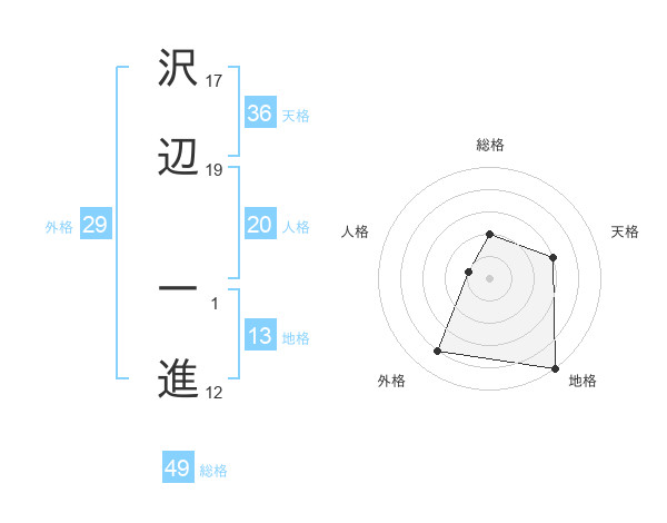 沢辺 一進さんの地格は13画の5点!