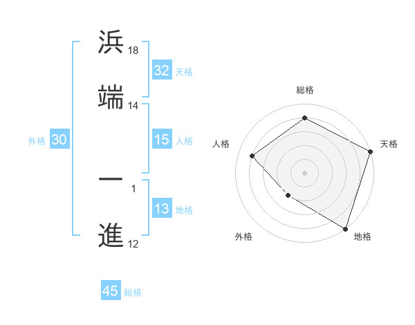 浜端 一進さんの地格は13画の5点!