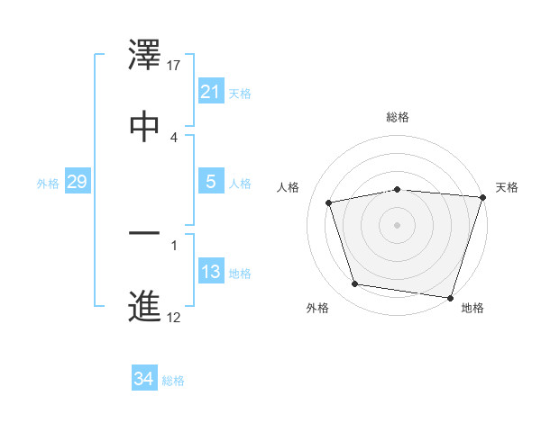 澤中 一進さんの天格は21画の5点!