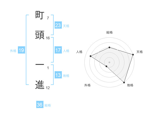 町頭 一進さんの地格は13画の5点!
