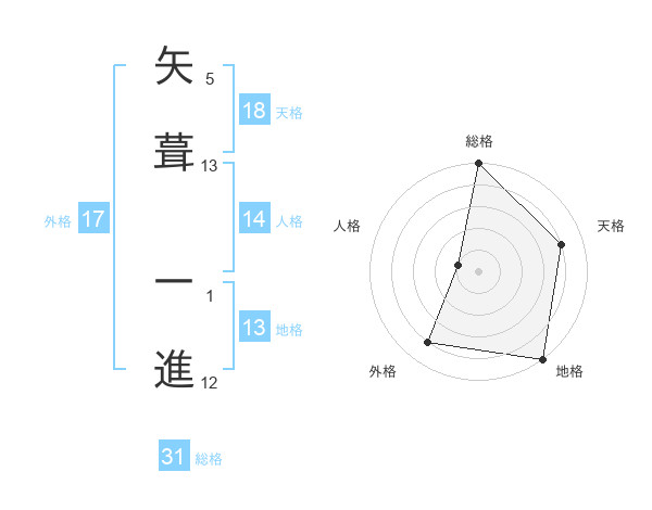 矢葺 一進さんを姓名の画数から五運を鑑定