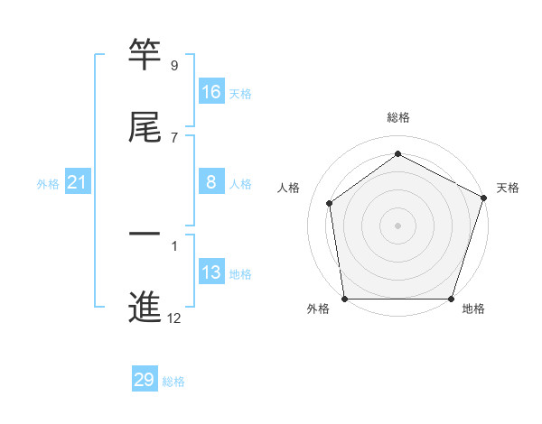 竿尾 一進さんを姓名の画数から五運を鑑定