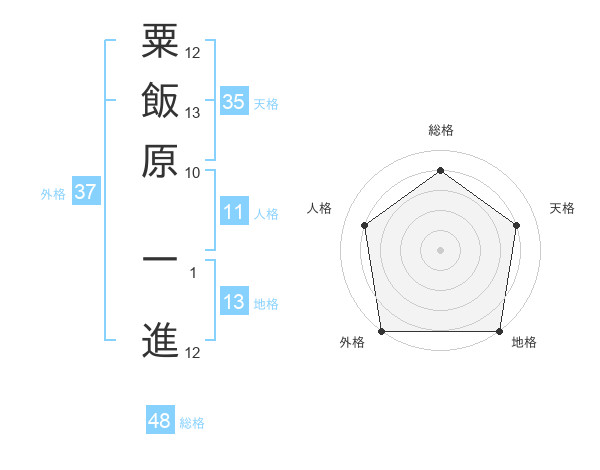 粟飯原 一進さんの地格は13画の5点!