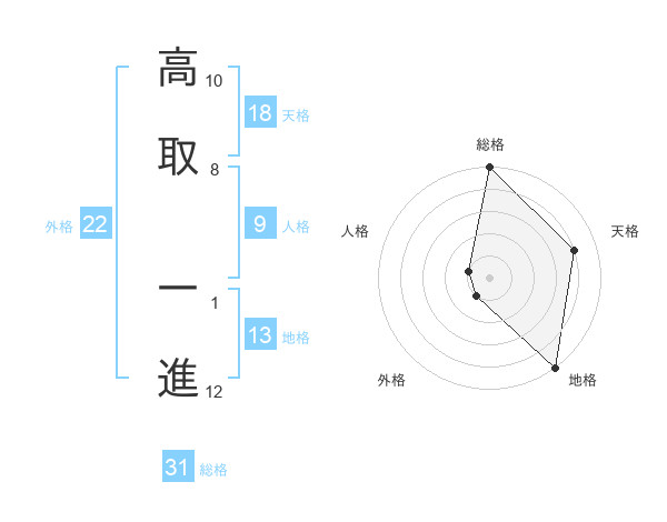 高取 一進さんの地格は13画の5点!