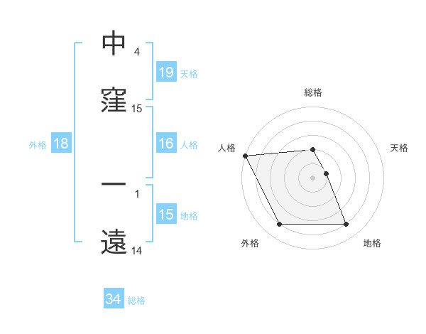 中窪 一遠さんを姓名の画数から五運を鑑定