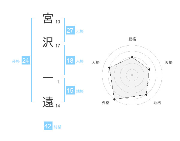 宮沢 一遠さんを姓名の画数から五運を鑑定