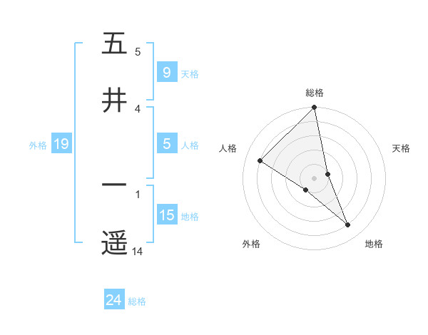 五井 一遥さんの総格は24画の5点!