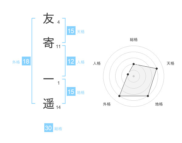 友寄 一遥さんの天格は15画の4点!