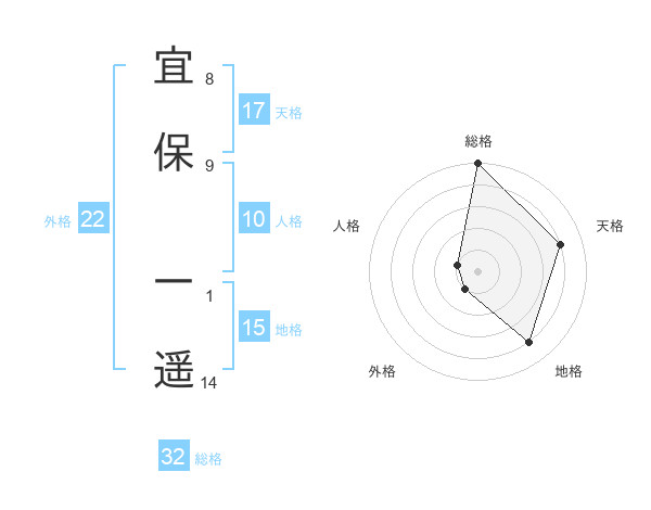 宜保 一遥さんの総格は32画の5点!