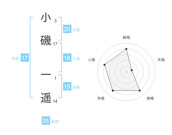 小磯 一遥さんを姓名の画数から五運を鑑定